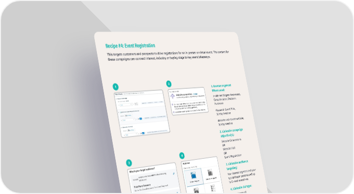 Recipe #4: Event Registration This targets customers and prospects to drive registrations for an in-person or virtual event. The content for these campaigns can connect interest, industry, or buying stage to key event takeaways. 1 2 1. 6sense segment filters used: In-Market Stages: Awareness, Consideration, Decision, Purchase Keyword: Event Title, 30 day timeline Website visit: Event website, 30 day timeline 2. LinkedIn campaign objective(s): Website Conversions OR 3 4 Website Visit OR Event Registration 3. LinkedIn audience targeting: Your 6sense segment and your typical buyer persona and up to C-level executives 4. LinkedIn Ad type: Single image ad 9