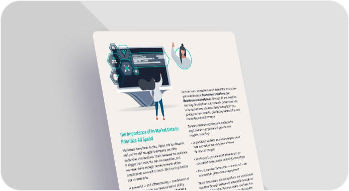 On their own, advertisers can’t detect this invaluable- yet-invisible data. But 6sense’s platform can illuminate and analyze it. Through AI and machine learning, the platform automatically determines who is in-market now and most likely to buy from you, giving you new tools for prioritizing ad spending and improving ad performance. The Importance of In-Market Data to Dynamic 6sense segments are available for Prioritize Ad Spend any LinkedIn campaign and provide new insights, including: Marketers have been buying digital ads for decades, • Unparalleled visibility into where buyers are in and yet we still struggle to properly prioritize their respective journeys (we call these audiences and budgets. That’s because the audience “in-market” stages) is bigger than ever, the ads are expensive, and we never have enough money to reach all the • The topics buyers are most interested in (or constituents we want to reach. We have to prioritize concerned about) based on their journey stage our investments. • Timing on when buyers may — or may not — be A powerful — and differentiating — combination of interested in personalized engagement 6sense + LinkedIn is a revenue teams’ ability These data points, and many others, are accessible in to target companies that are in-market for a real-time through 6sense and actionable through our solution now. This allows prioritizing companies at LinkedIn integration. Revenue teams now have fine- the best time while continuing to use all the other grained control in terms of what types of accounts targeting data LinkedIn offers. and buyers a revenue team might target. This ability to target based on timing isn’t otherwise This microscopic control minimizes ad spend and available in LinkedIn. maximizes ad impact. With the power of predictive When buying teams are tasked with finding products analytics, 6sense customers: or solutions for their organization, they spend time • Perform nearly 2x better than the standard LinkedIn conducting research online anonymously on third- clickthrough rate benchmark party sites such as industry publications, blogs, social networks, product review sites like G2 and • And at costs 13% lower for cost per click than TrustRadius, and more. LinkedIn’s CPC benchmark 4