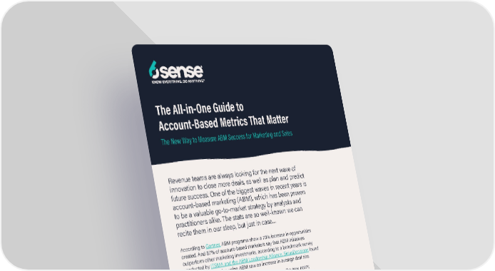 Quality accounts, conversion metrics, and… action! One of the most persuasive reasons to adopt conversion metrics as the North Star of your ABX surround strategy is that they provide an instantly digestible summary of your business growth. No more scrambling for disparate or outdated data points that don’t amount to a whole greater than its parts. As a sales or marketing leader, you have an understanding of your total addressable market (TAM), ICP, and existing programs — and how to work each of these levers to arrive at your monthly targets. Marketing as a discipline is a very necessary part of the business, and aligning sales and marketing efforts with metrics helps everyone stay focused on growing the business with an eye on what matters most: building engagement, brand awareness, or becoming the recognized leader in your industry. While data provides insight into what’s happening, metrics bring that data to life. Metrics help you understand the nuances of your process - where you can find the red and make improvements. Together, data and metrics are the ace up your sleeve, your competitive edge that tells you how to pull away from the pack. With a deep understanding of how your business functions, you have all you need to make educated decisions about your business that move you ever closer to reaching, and breaking through to your goals. What’s your metrics story? We’d love to hear your personal story of redefining your metrics to align your ABX programs. Email us your story at mymetrics@6sense.com. Learn more about how 6sense can help you drive predictable revenue growth. About 6sense The 6sense Account Engagement Platform helps B2B organizations achieve predictable revenue growth by putting the power of AI, big data, and machine learning behind every member of the revenue team. 6sense uncovers anonymous buying behavior, prioritizes accounts for sales and marketing, and enables them to engage resistant buying teams with personalized, multi-channel, multi-touch campaigns. 6sense helps revenue teams know everything they need to know about their buyers so they can easily do anything needed to generate more opportunities, increase deal size, get into opportunities sooner, and compete and win more often. 6sense.com | (415) 212-9225