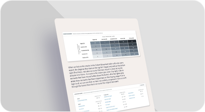 When we look at the results in the Cohort Movement table within the same report, the diagonal that starts at the top left (Target) and ends at the bottom right (Purchase), indicates accounts that have stayed in place during the analysis time frame. Accounts in the darker gray areas (top right) indicate accounts that have moved further down the funnel, while the lighter gray areas show accounts that have slipped back in their buying stage. From a high level, we can see that we have successfully progressed more accounts through the funnel than those accounts that slipped backward. Finally, the Activities by Source section of the report shows us the exact activities our accounts engaged with during the analysis time frame compared to the baseline. These activities are broken out by intent, reach, and engagement, and each line item can be expanded to show campaign details like campaign name, pipeline and revenue influenced, and the specific accounts reached. With this level of detail, marketing teams can better formulate and refine their strategy for continued buying stage progression. 6sense.com | (415) 212-9225
