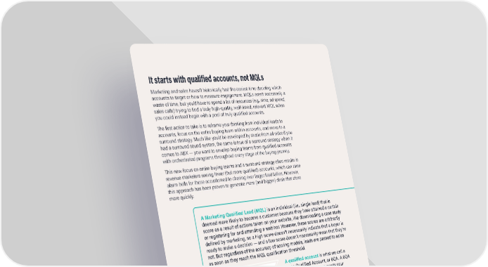 It starts with qualified accounts, not MQLs Marketing and sales haven’t historically had the easiest time deciding which accounts to target or how to measure engagement. MQLs aren’t necessarily a waste of time, but you’d have to spend a lot of resources (e.g., time, ad spend, sales calls) trying to find a truly high-quality, well-timed, relevant MQL when you could instead begin with a pool of truly qualified accounts. The first action to take is to reframe your thinking from individual leads to accounts, focus on the entire buying team within accounts, and move to a surround strategy. Much like you’d be enveloped by music from all sides if you had a surround sound system, the same is true of a surround strategy when it comes to ABX — you want to envelop buying teams from qualified accounts with orchestrated programs throughout every stage of the buying journey. This new focus on entire buying teams and a surround strategy often results in revenue marketers seeing fewer (but more qualified) accounts, which can raise alarm bells for those accustomed to chasing ever larger lead tallies. However, this approach has been proven to generate more (and bigger) deals that close more quickly. A Marketing Qualified Lead (MQL) is an individual (i.e., single lead) that is deemed more likely to become a customer because they have attained a certain score as a result of actions taken on your website, like downloading a case study or registering for and attending a webinar. However, these scores are arbitrarily defined by marketing, so a high score doesn’t necessarily indicate that a buyer is ready to make a decision — and a low score doesn’t necessarily mean that they’re not. But regardless of the accuracy of scoring models, leads are passed to sales as soon as they reach the MQL qualification threshold. A qualified account is what we call a 6sense Qualified Account, or 6QA. A 6QA represents an account that meets your ideal customer profile and has just moved to the decision or purchase buying stages as predicted by 6sense’s patented AI models. Your historical sales and marketing data, combined with real-time intent and engagement data, is what powers 6sense’s four predictive models: account fit, contact fit, contact engagement, and current buying stage. These models find patterns in the behavior of both anonymous and known buyers and compare that activity of past successful opportunities to determine where sellers and marketers should focus their time and effort. Together, these four models provide a deeper level of insight that enables revenue teams to predictably grow pipeline and revenue. 6sense.com | (415) 212-9225