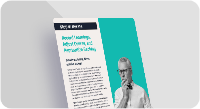 Step 4: Iterate Record Learnings, Adjust Course, and Reprioritize Backlog Growth marketing drives positive change. With a fresh batch of hypotheses either validated or invalidated, growth teams need to dedicate time to reflect on, and internalize, their findings. By building up an internal repository of market insights and tactical benchmarks, marketers can conduct more effective experiments in the future while adding immense value to the business at large. The knowledge they glean can be used to inform major business and/or product development decisions while keeping internal discourse productive and anchored in objective reality. The ultimate goal of the iteration step should be to develop a sufficiently robust understanding of your business growth funnel that budgetary decisions can be made with confidence. Ideally, growth teams should be able to point to a body of knowledge that proves — or at least highly suggests — that they could fuel additional revenue growth for the company if provided additional budget. It’s these types of strong, data-backed arguments that can help CMOs demonstrate the value of their role and secure their place at the leadership table. 13